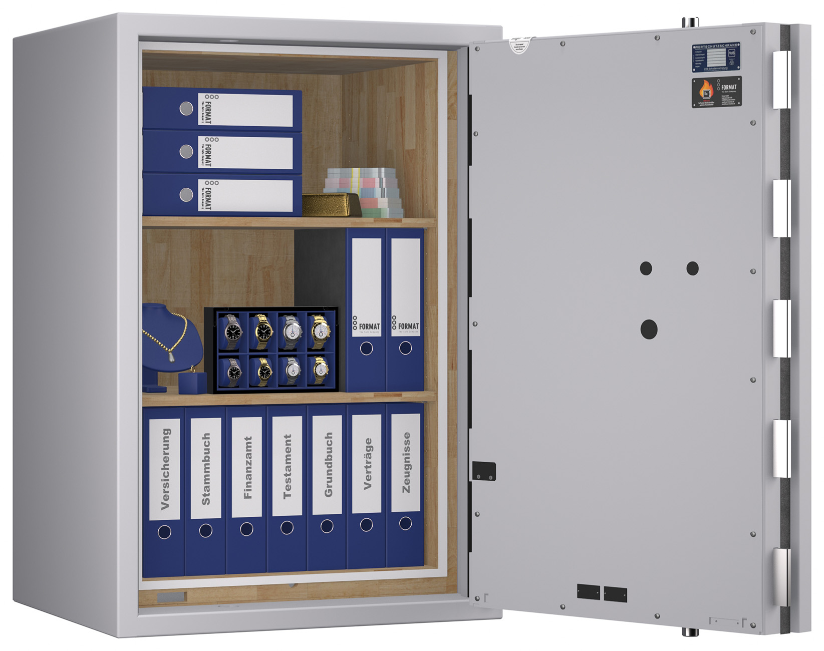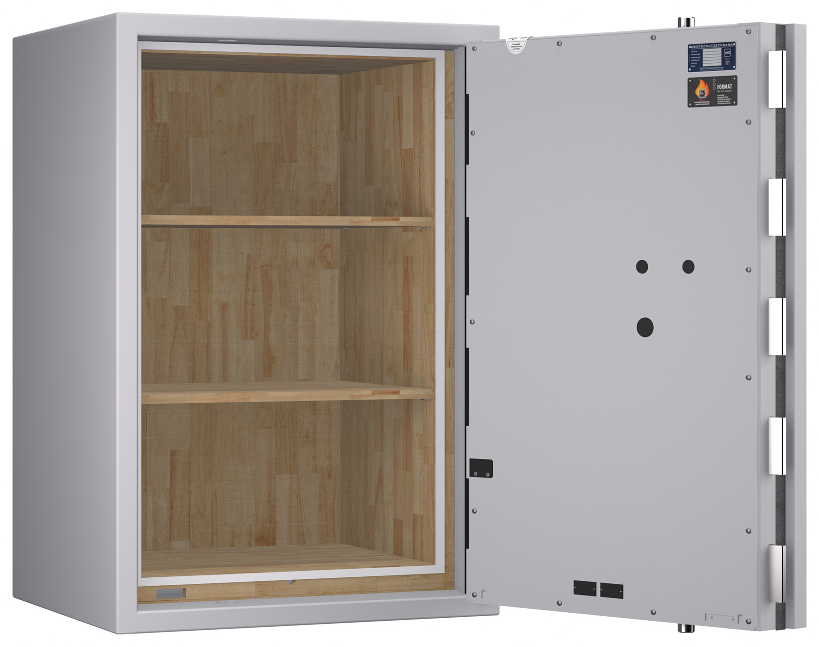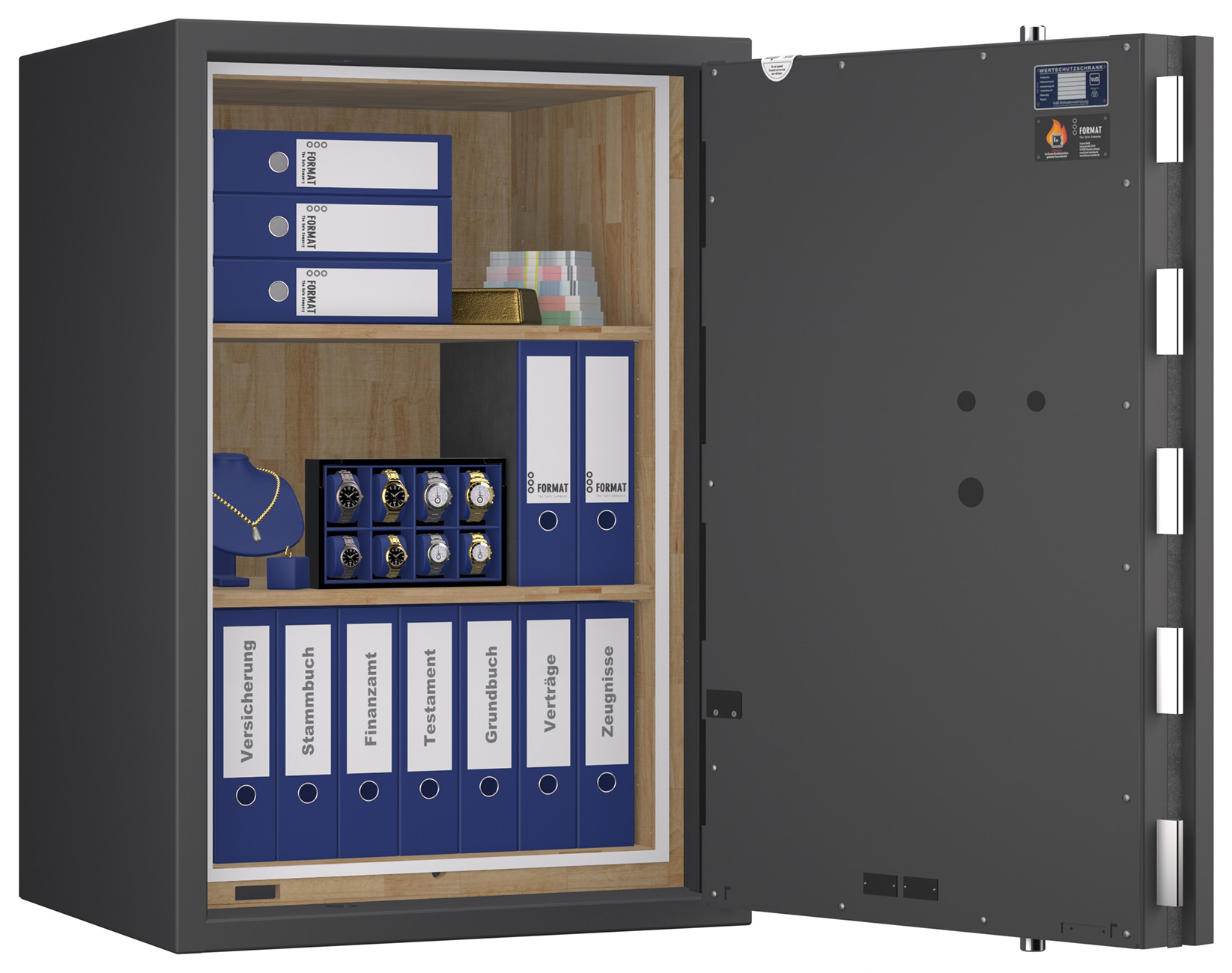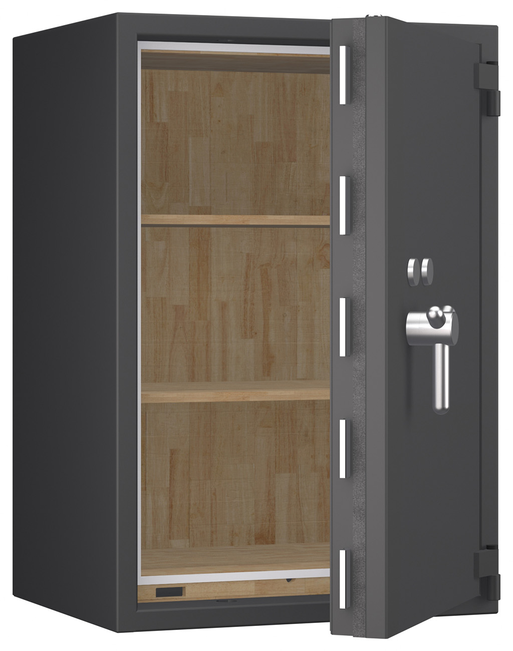 Zertifizierter Wertschutzschrank gem. Widerstandsgrad IV nach EN 1143-1 mit zusätzlicher Brandschutz-Ausstattung. Hochwertiger Holzeinsatz und gewichtsoptimierte Bauweise für hohe Ansprüche im gewerblichen und privaten Bereich.