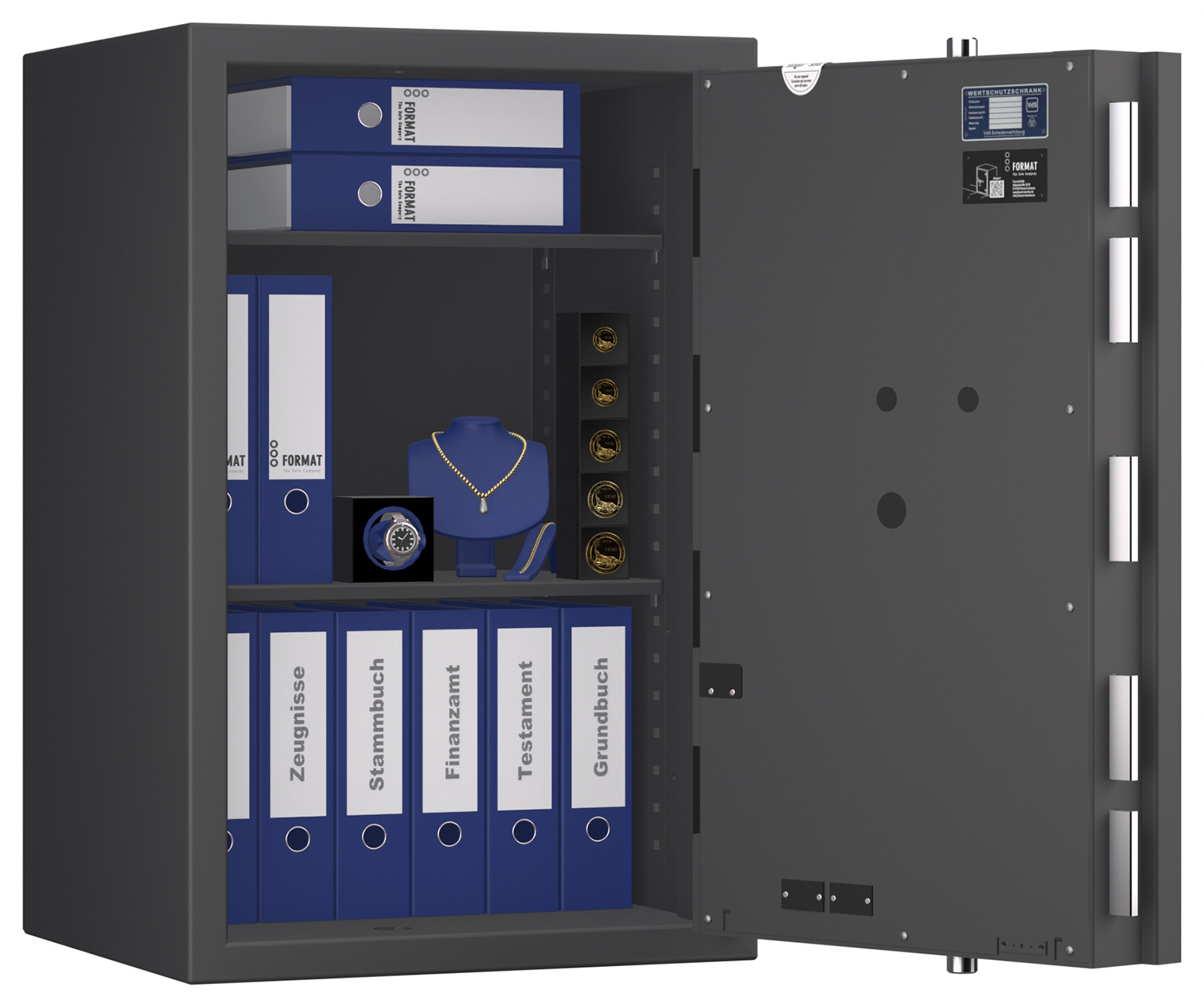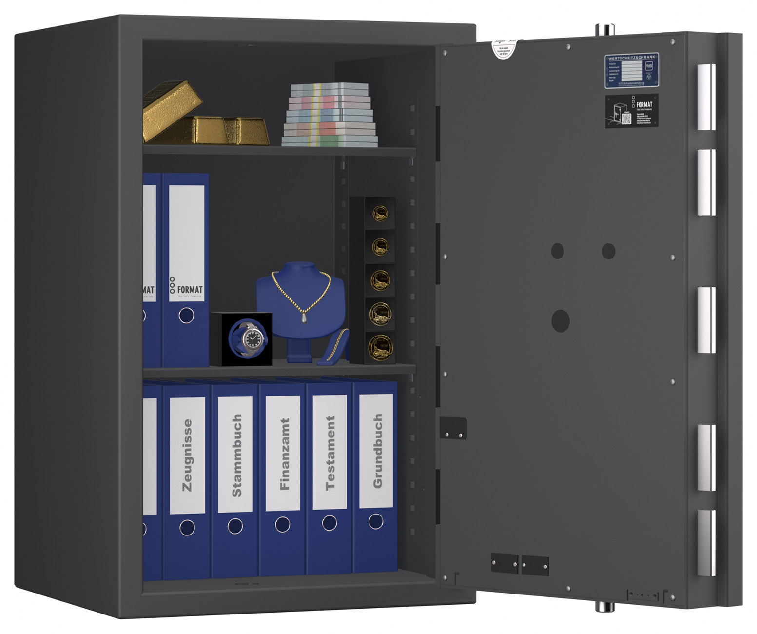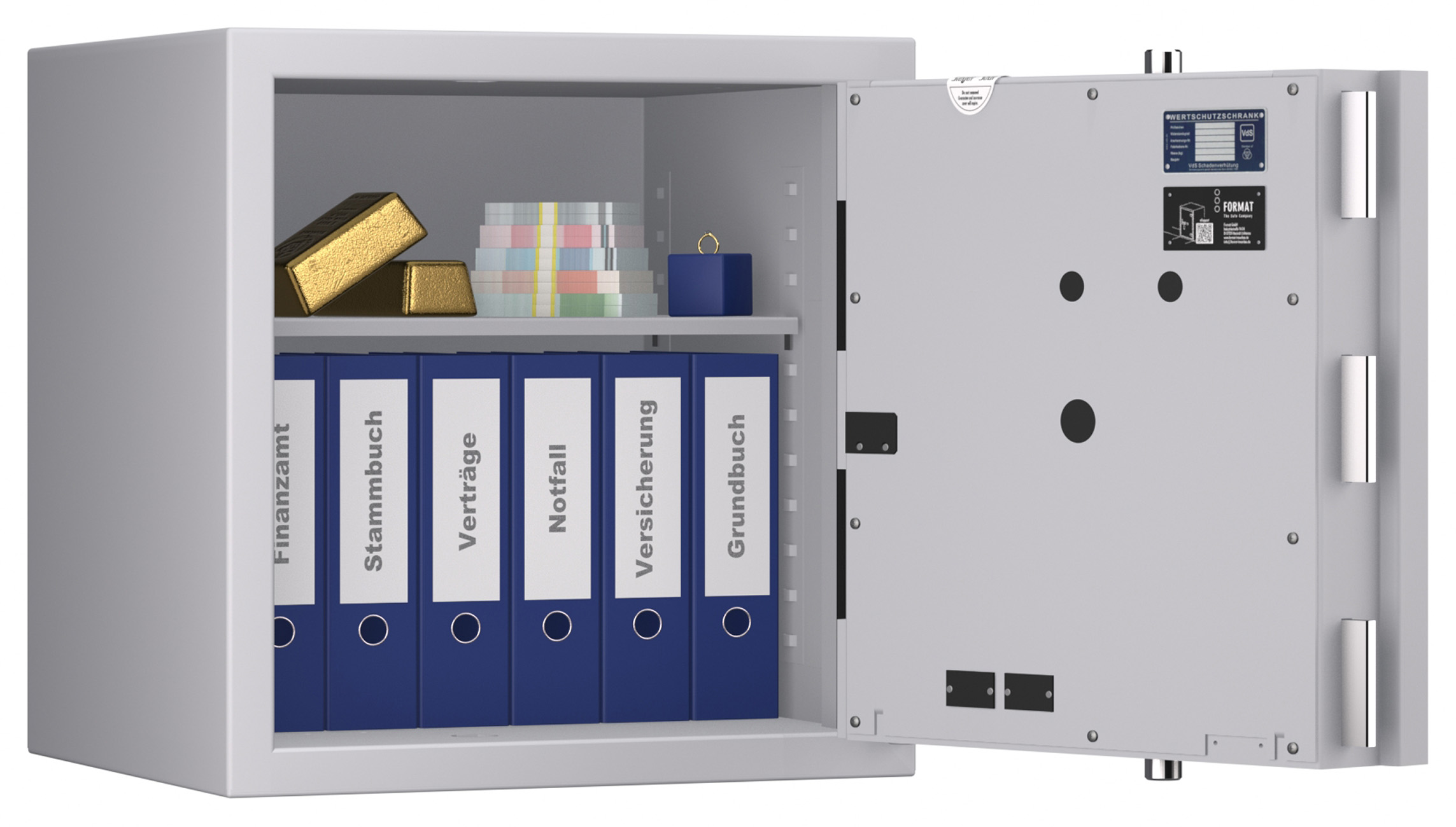 Zertifizierter Wertschutzschrank gem. Widerstandsgrad IV nach EN 1143-1. Maximale Innenraumnutzung und gewichtsoptimierte Bauweise für hohe Ansprüche im gewerblichen und privaten Bereich.