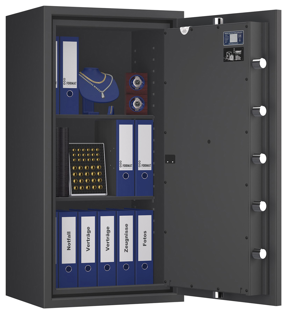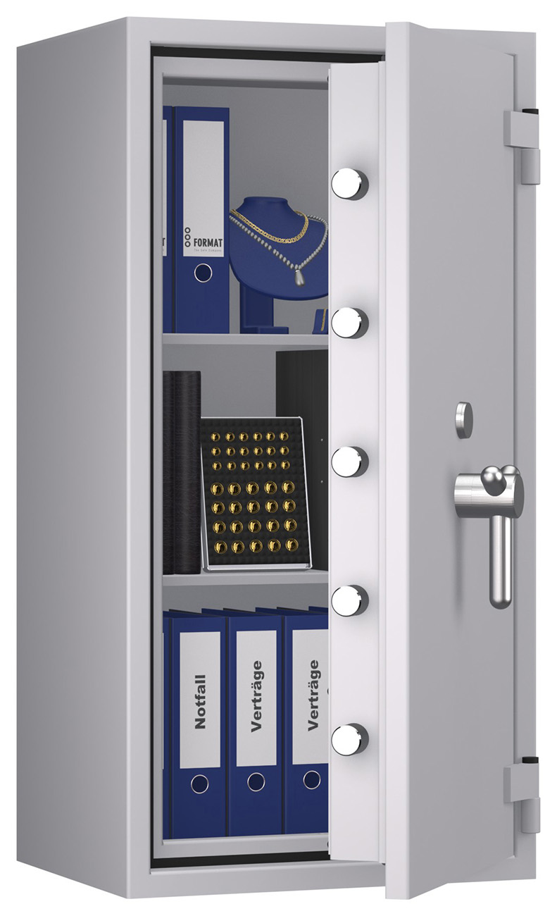 Zertifizierter Wertschutzschrank gem. Widerstandsgrad III nach EN 1143-1 mit Einbruchschutz und optional erhältlicher Brandschutz-Ausstattung. Freistehend einsetzbare Tresorserie mit vielseitigen Zubehöroptionen. Gewichtsoptimierte Bauweise und große Innenraumvolumen bieten flexible Einsatzmöglichkeiten.